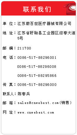 聯(lián)系人:陳春兵 地址:江蘇省盱眙縣工業(yè)園區(qū)迎春大道5號(hào) 郵編:211700 互聯(lián)網(wǎng)藥品信息服務(wù)資格證書(shū)號(hào):(蘇)-非經(jīng)營(yíng)性-2023-0029 醫(yī)療器械投拆舉報(bào)電話:12315 電話:0086-517-88296001 88296008 0086-517-88295866 傳真:0086-517-88296000 網(wǎng)址:www.cnwebest_com.centoo.cn E-mail:sales@cnwebest_com.centoo.cn(銷售) 后臺(tái)管理 郵箱登錄 備案號(hào):蘇ICP備17002214號(hào)-1 |